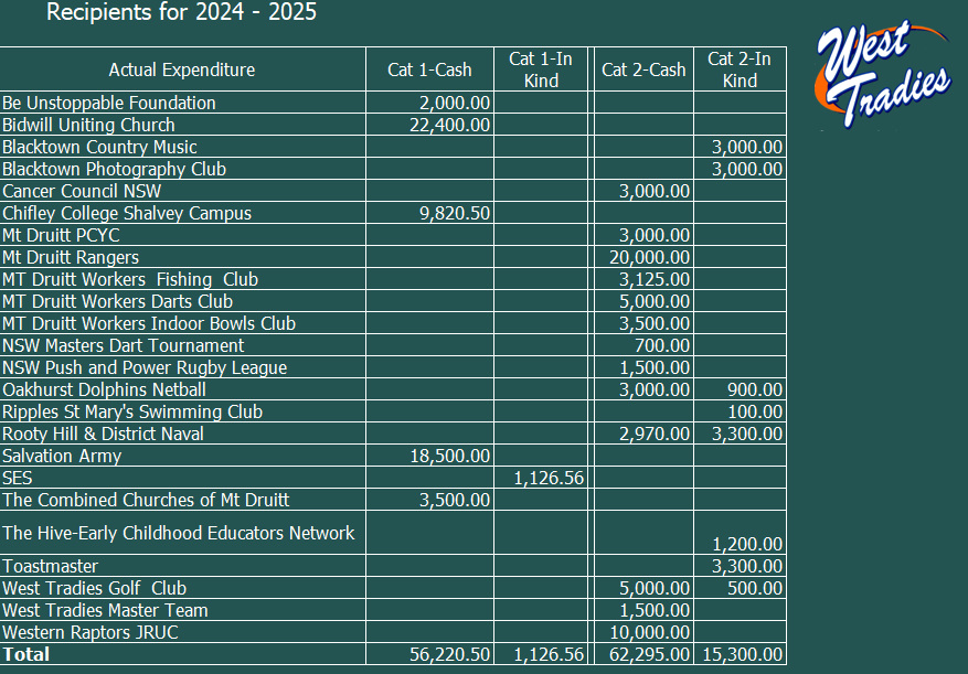Through the ClubGRANTS scheme, West Tradies has provided financial support to organisations who provide specific and dedicated services within our local community. The ClubGRANTS scheme runs annually from September to August. Organisations wishing to apply for funding will need to complete an application form, see links below. All applications are tabled at monthly Board meetings. Please plan ahead with your requests as applications for funding may take up to two months for processing.